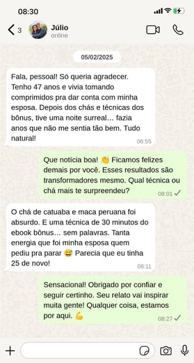 São histórias de PESSOAS REAIS, como você, que decidiram confiar na FORÇA DA NATUREZA para melhorar sua saúde FÍSICA, EMOCIONAL e até mesmo SEXUAL e hoje colhem os frutos de uma vida mais equilibrada e natural.